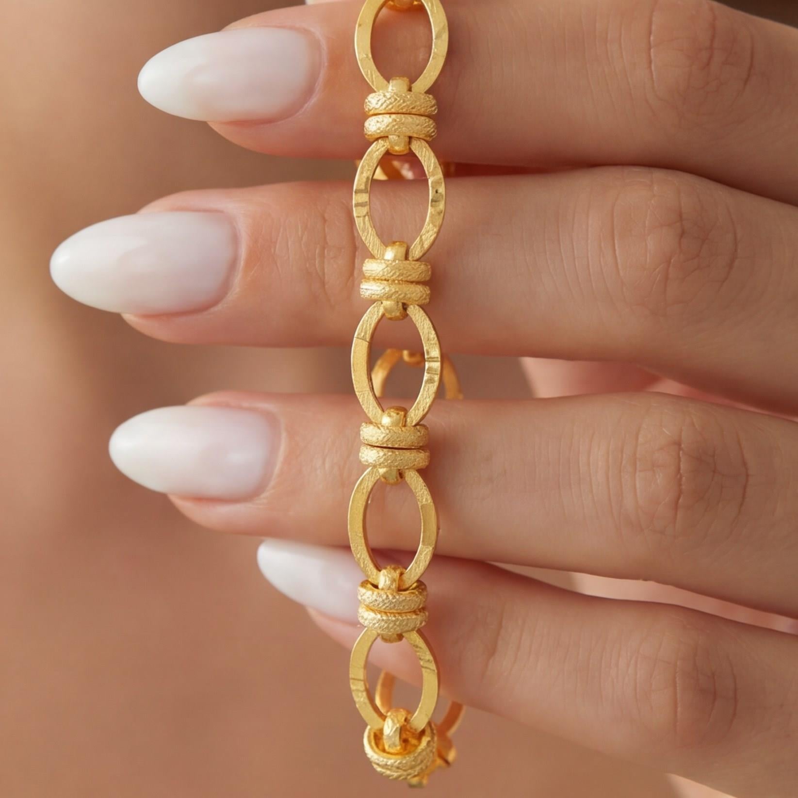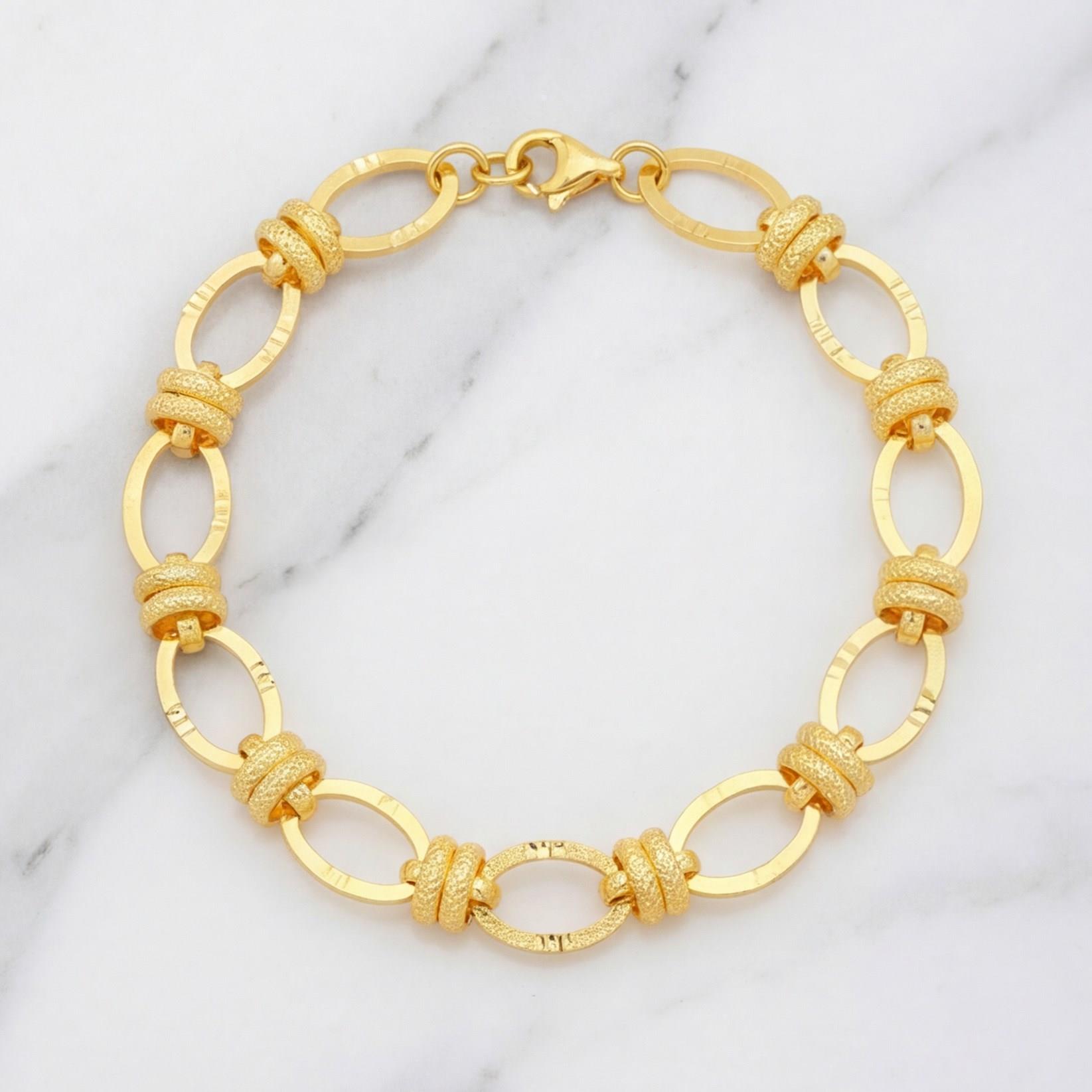 Altın kaplama Samanyolu bileklik formundaki bu özel tasarım, taşlı ve parlak detaylarıyla bilekte ışıl ışıl bir görünüm oluşturarak şık kombinleri tamamlar.