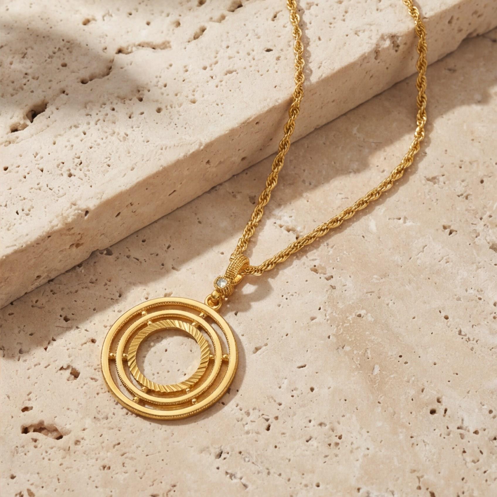 Altın kaplama kolye formunda tasarlanan bu özel kombin, parlak yüzeyiyle klasik altın ışıltısını uzun süre koruyarak stilinize güçlü ve zarif bir dokunuş katar. Yarım altın detaylı kolye ile çeyrek altın bilekliğin uyumlu birlikteliği, tek parçada dengeli ve dikkat çekici bir görünüm sunarken günlük kullanımdan özel anlara kadar her stile kolayca adapte olur.