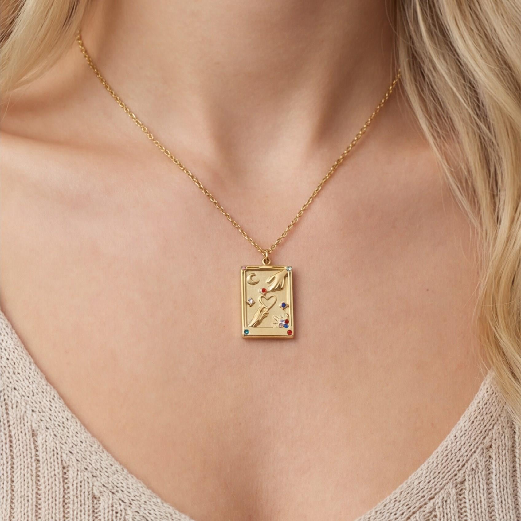 Çelik Kolye, Altın Kaplama Şans Tarot Kadın Kolye K-121 (K-121)