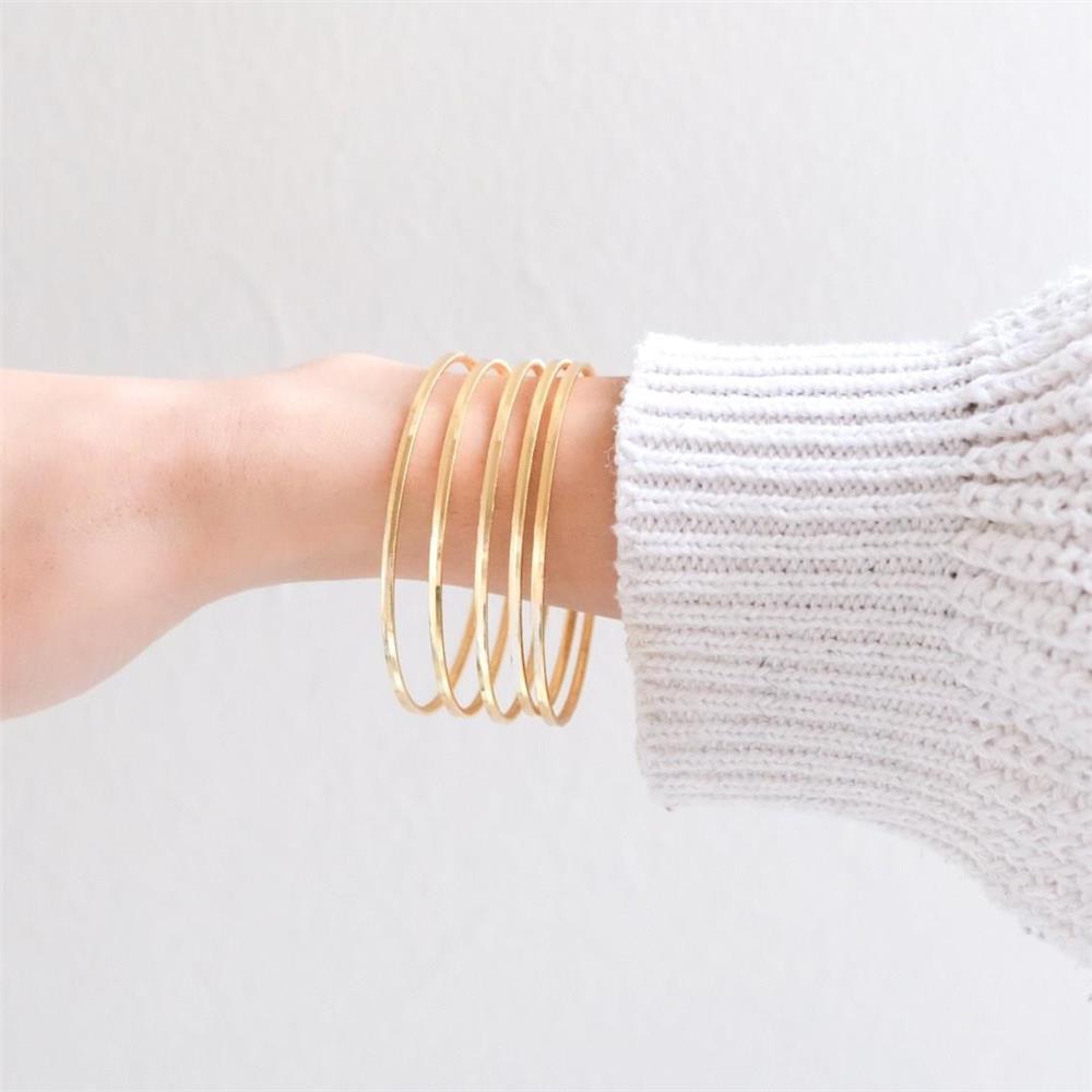 Altın kaplama bilezik formundaki bu özel tasarım, parlak yüzeyiyle geleneksel altın şıklığını uzun süre koruyarak güçlü bir stil sunar.