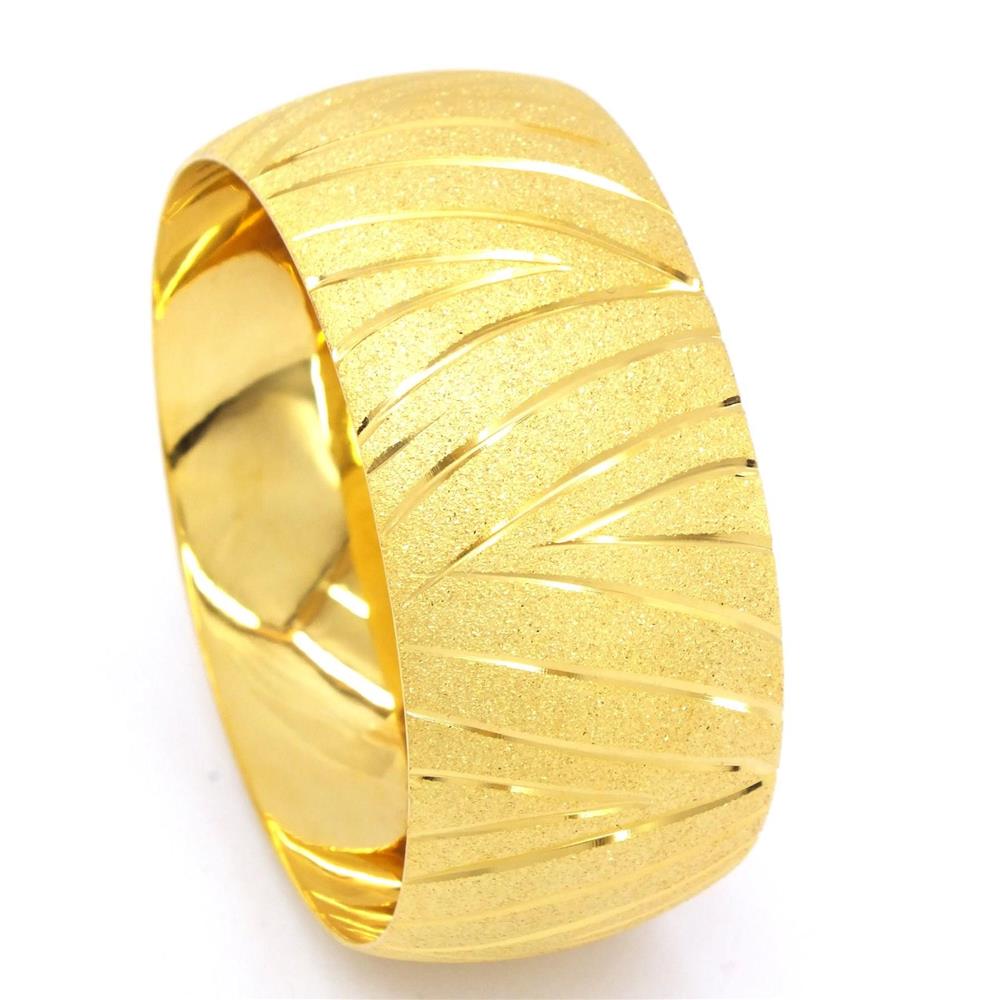Altın kaplama bilezik formundaki bu özel tasarım, parlak yüzeyiyle geleneksel altın şıklığını uzun süre koruyarak güçlü bir stil sunar.