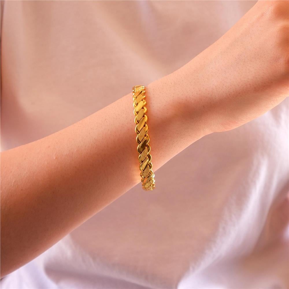 Altın kaplama Adana burması formundaki bu özel tasarım, kalın ve örgülü yapısıyla klasik altın bilezik görünümünü güçlü ve dikkat çekici şekilde sunar.