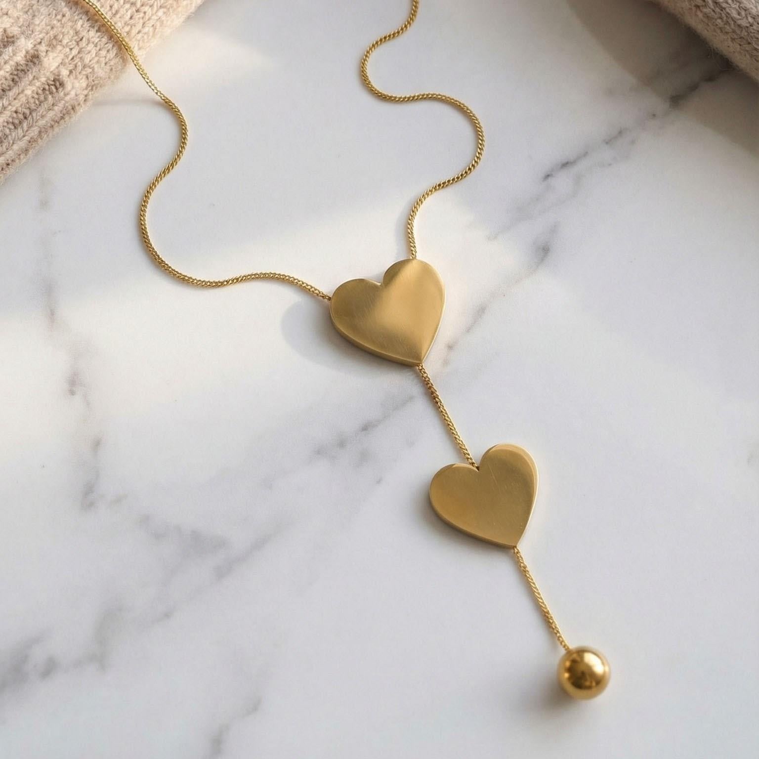 Altın kaplama kolye formundaki bu özel tasarım, paslanmaz çelik yapısı ve 22 ayar altın rengi kaplamasıyla uzun süre parlak görünümünü koruyarak boyun hattında zarif ve dikkat çekici bir stil sunar. Kararmaya karşı dayanıklı yapısı sayesinde günlük kullanımdan özel kombinlere kadar farklı stillerle kolayca uyum sağlar.