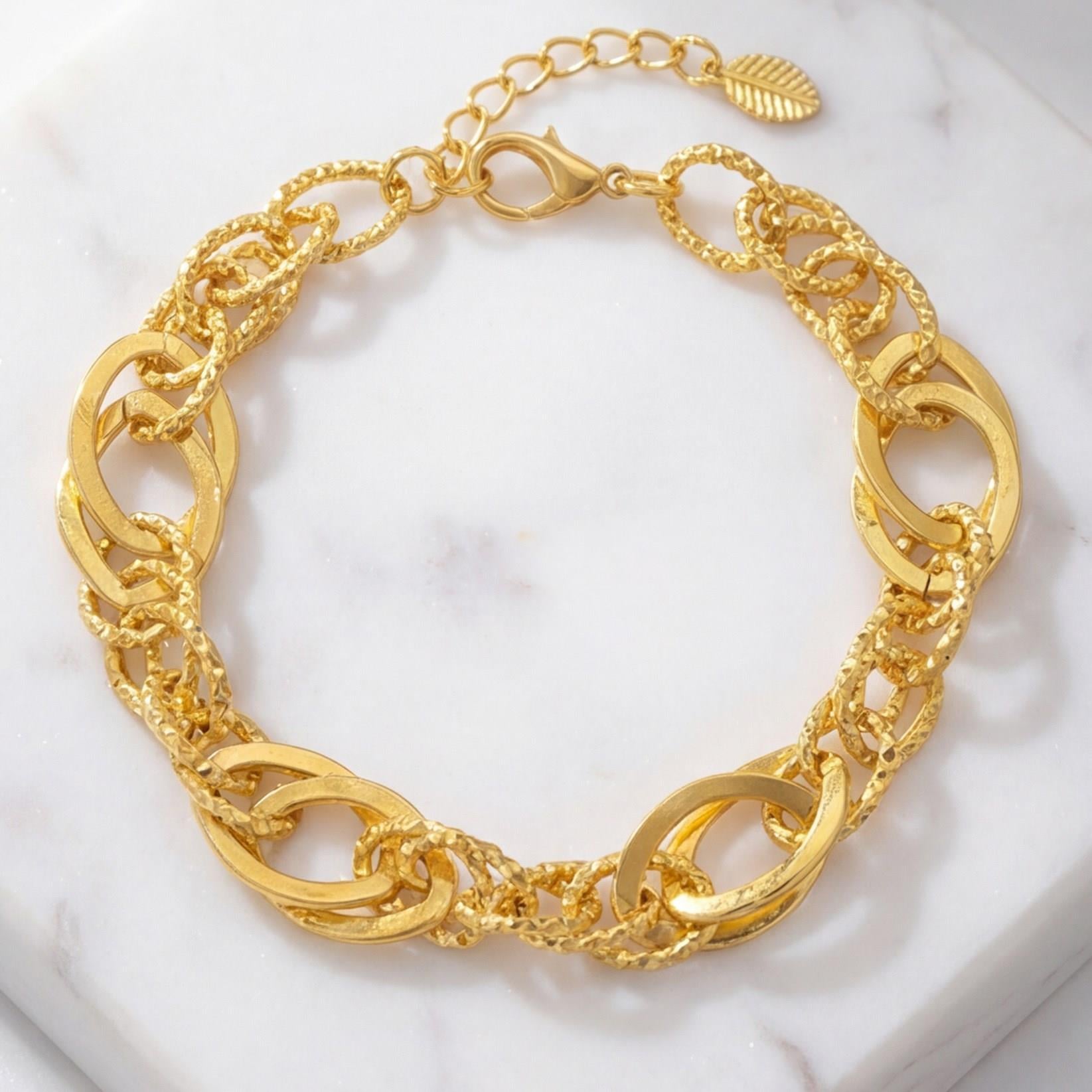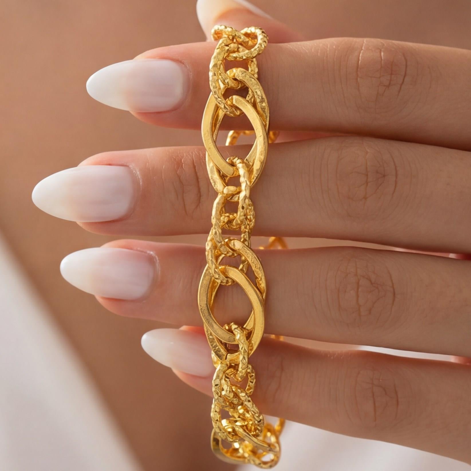 Samanyolu Bileklik 22 Ayar Altın Kaplama Lazerli Zincir Model BLK-495 (BLK-495)