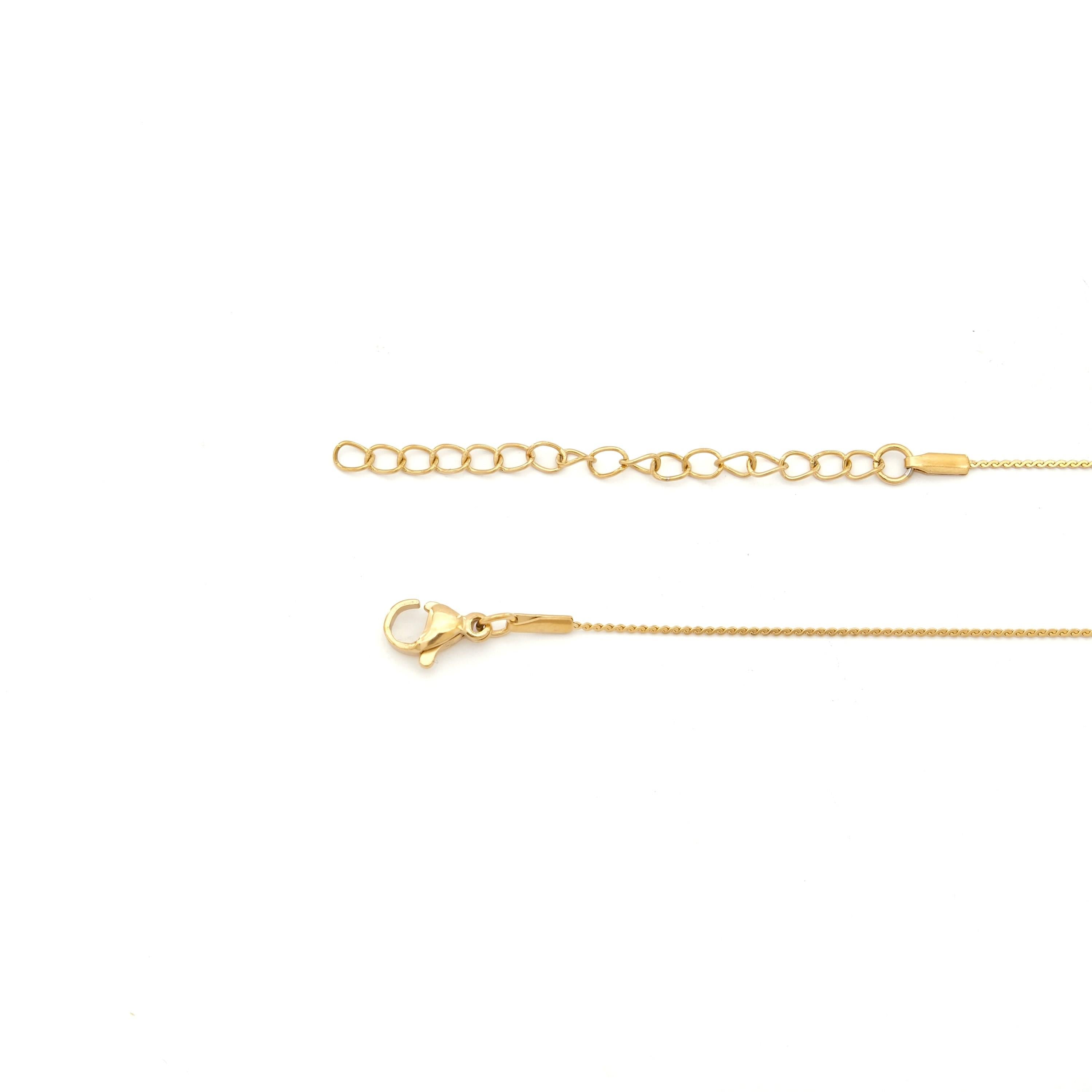 Altın kaplama kolye formundaki bu özel tasarım, paslanmaz çelik yapısı ve 22 ayar altın rengi kaplamasıyla uzun süre parlak görünümünü koruyarak boyun hattında zarif ve dikkat çekici bir stil sunar. Kararmaya karşı dayanıklı yapısı sayesinde günlük kullanımdan özel kombinlere kadar farklı stillerle kolayca uyum sağlar.