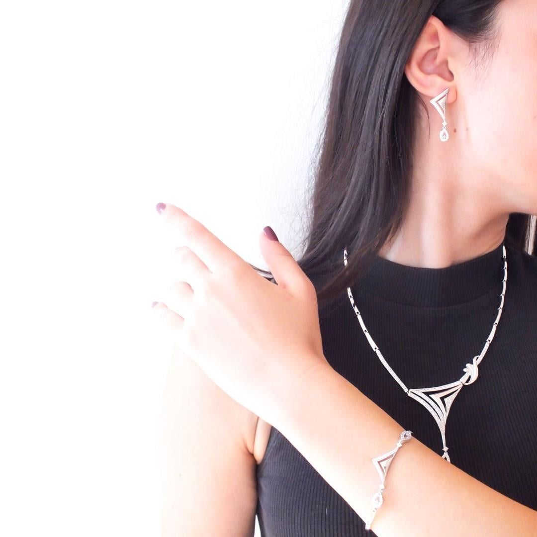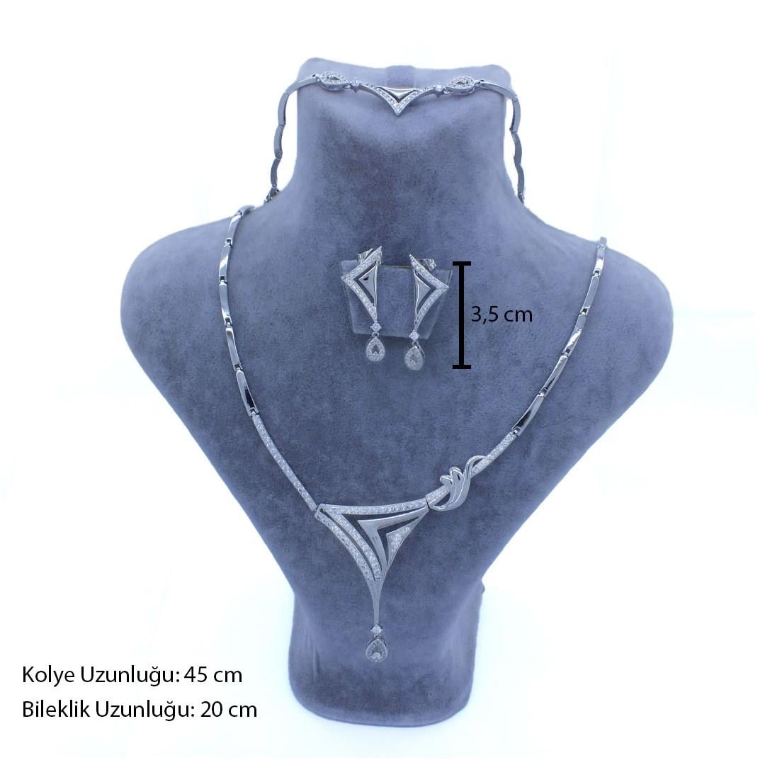 Çelik set formundaki bu özel tasarım, uyumlu metal parçalarıyla günlük ve şık kombinler için güçlü bir görünüm sunar.