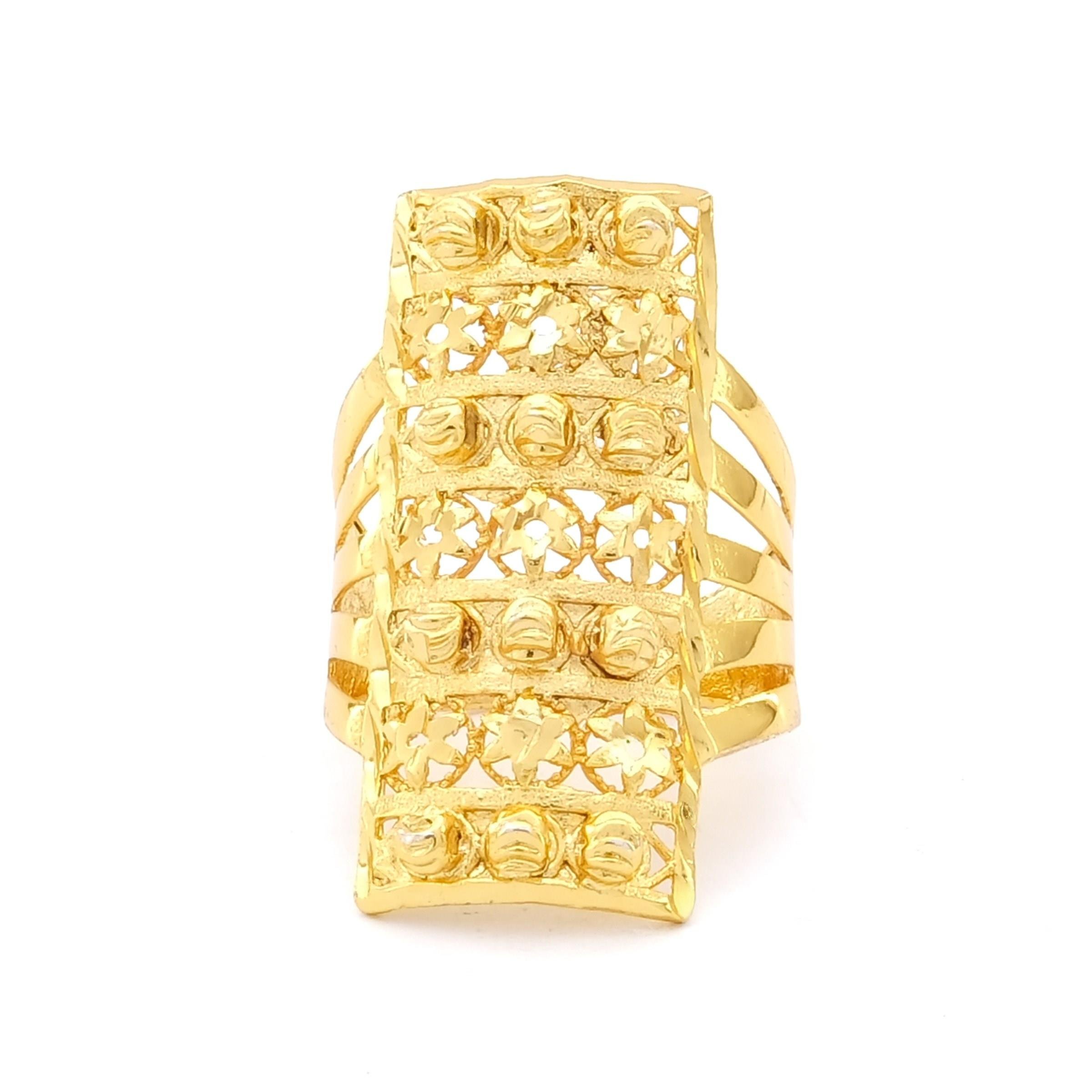 Renk: Parlak altın rengi, yüzüğün zarif detaylarını öne çıkarır