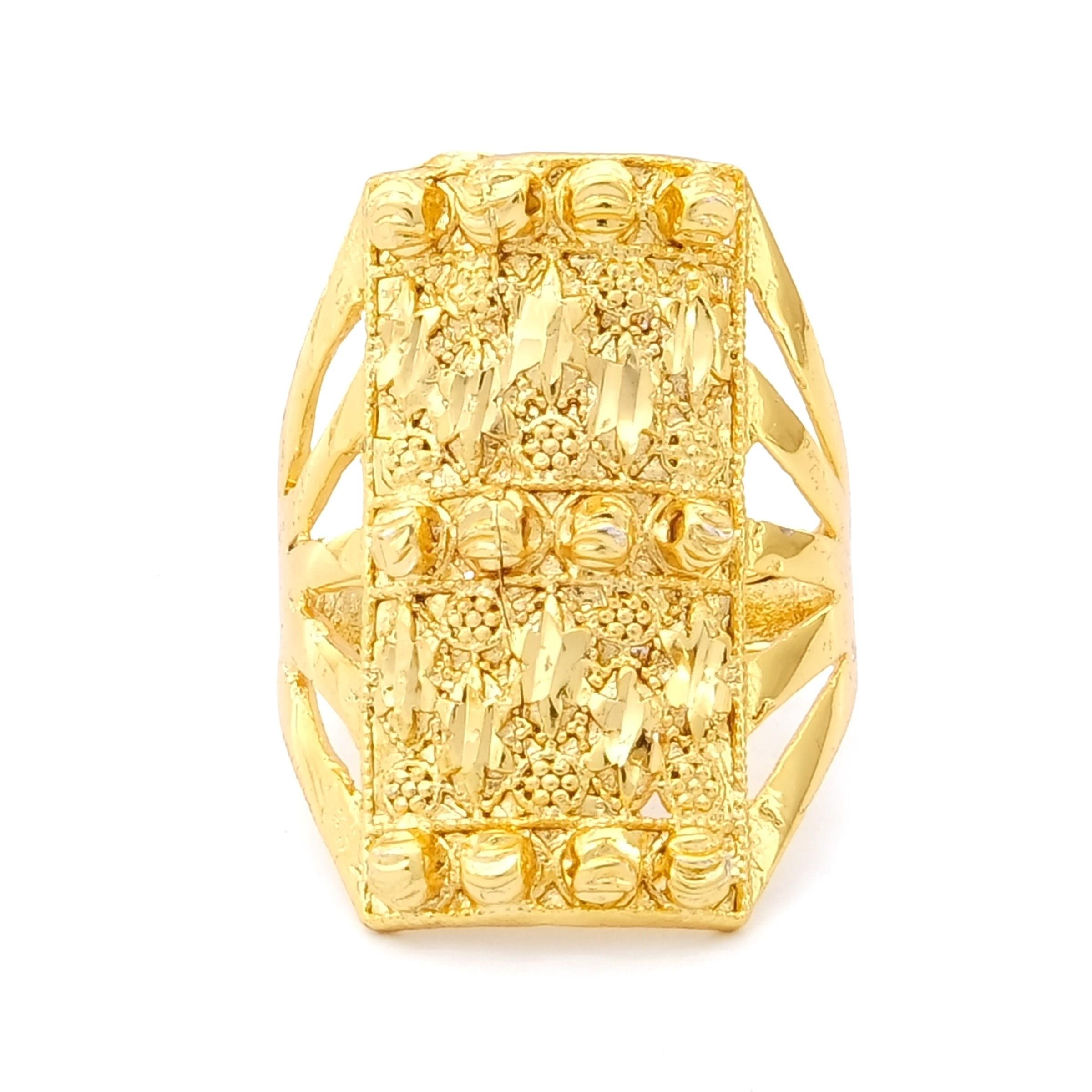 Renk: Parlak altın rengi, yüzüğün zarif detaylarını öne çıkarır