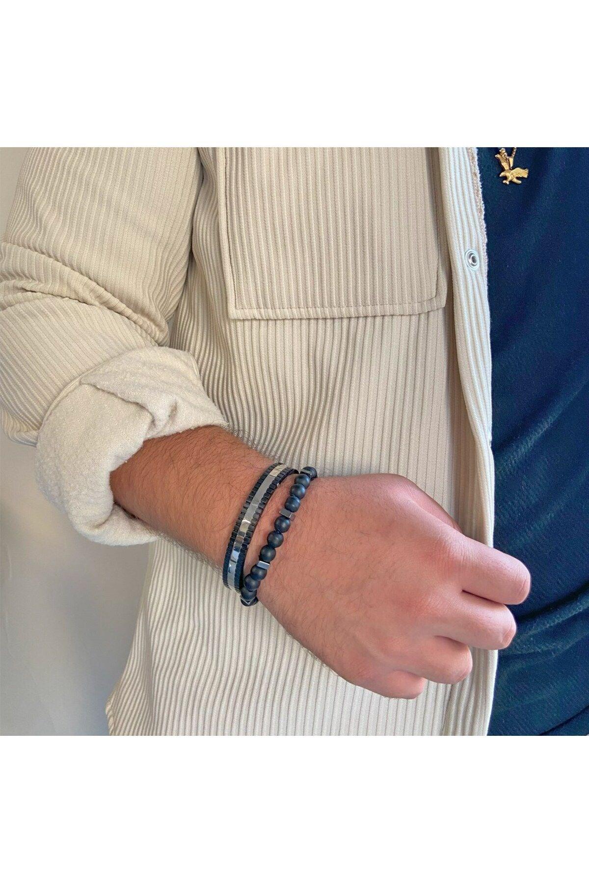 316L Çelik Kelepçe ve Oniks Doğal Taş Erkek Bileklik Kombini KMB-131