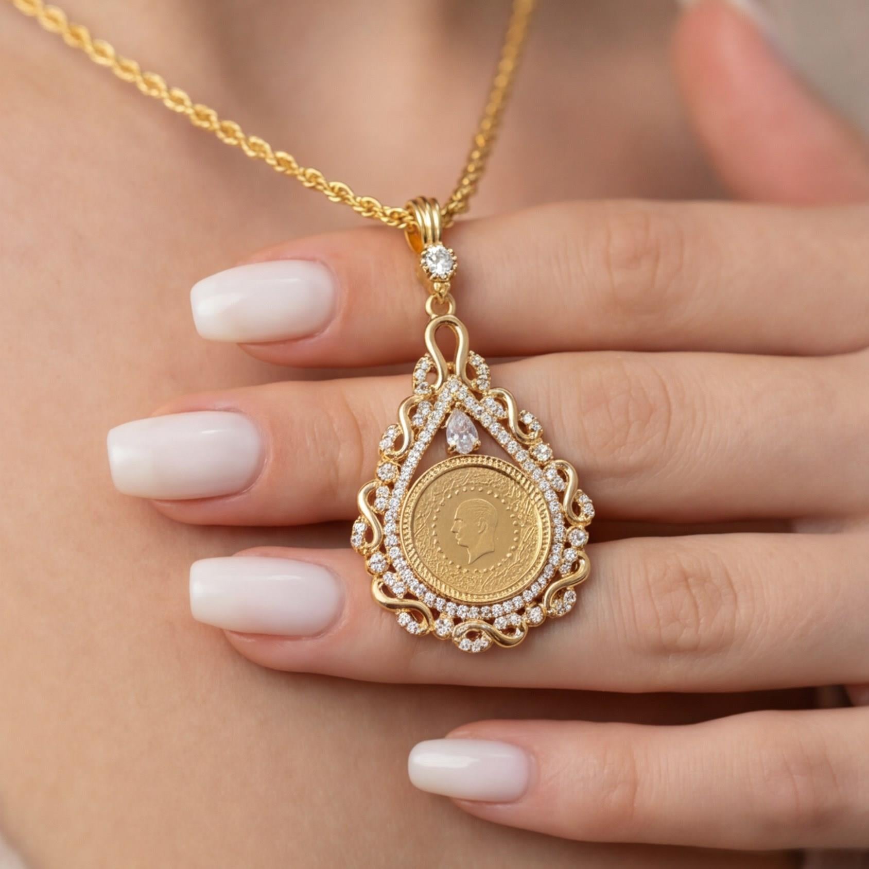 Altın Kaplama Çeyrek Altınlı Kolye - Sonsuzluk Model 45 CM (BND-159)