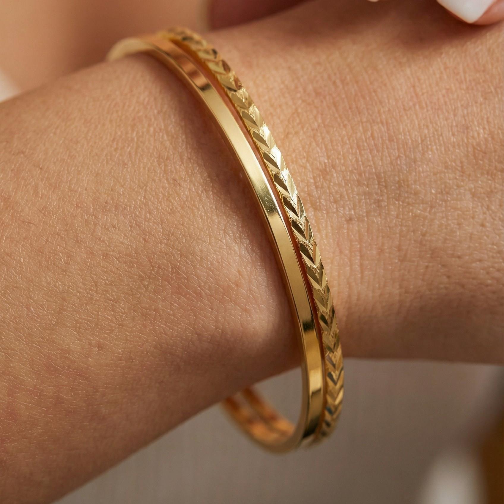 Altın Kaplama İmitasyon Başak Ajda Bilezik Ve 2mm Kibrit Çöpü Bilezik Kombin BND-131 (BND-131-58)