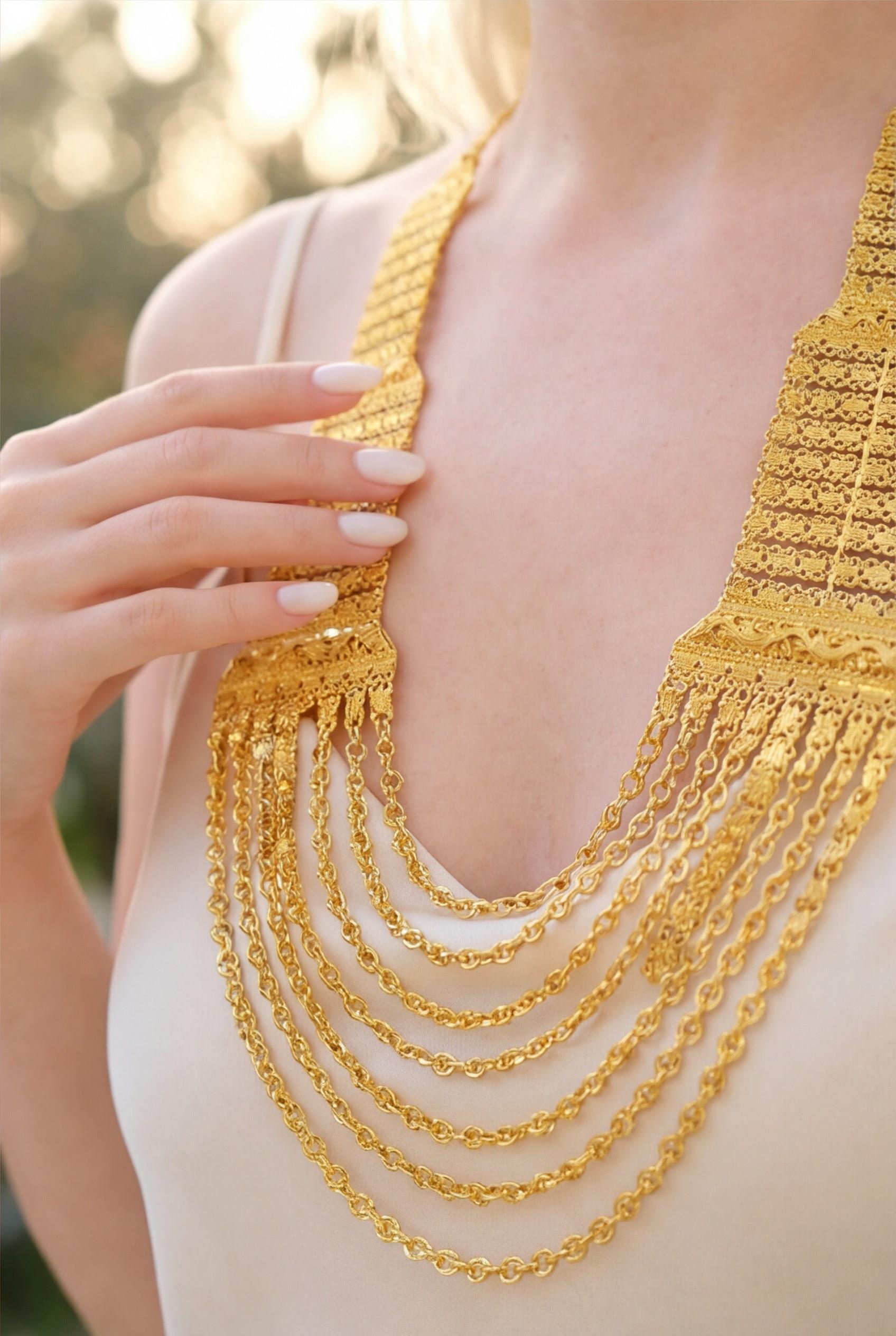 Altın kaplama kolye formunda tasarlanan bu özel kombin, parlak yüzeyiyle klasik altın ışıltısını uzun süre koruyarak stilinize güçlü ve zarif bir dokunuş katar. Yarım altın detaylı kolye ile çeyrek altın bilekliğin uyumlu birlikteliği, tek parçada dengeli ve dikkat çekici bir görünüm sunarken günlük kullanımdan özel anlara kadar her stile kolayca adapte olur.