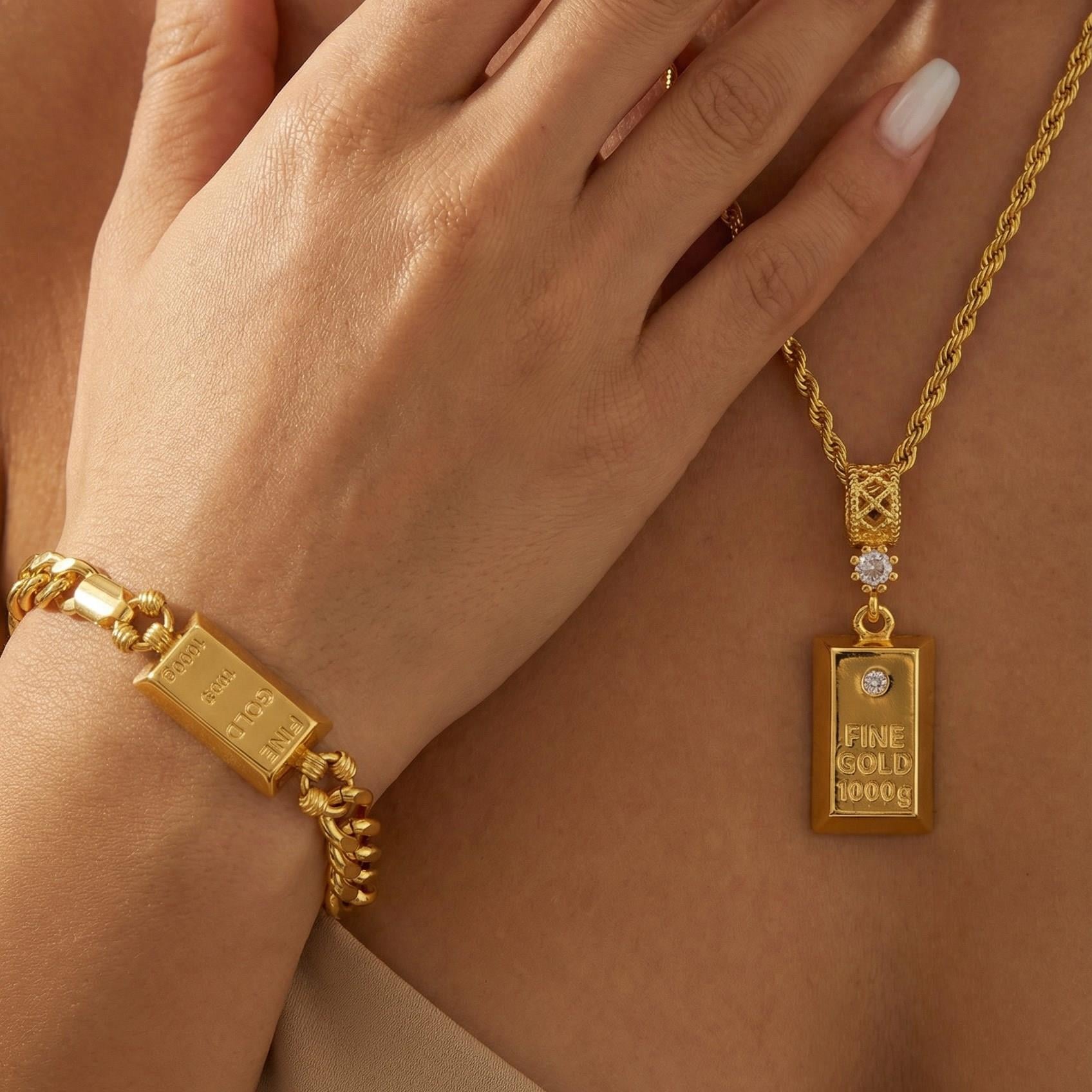 Altın Kaplama Külçe Model Kolye Ve Bileklik Kombin BND-120 (BND-120)