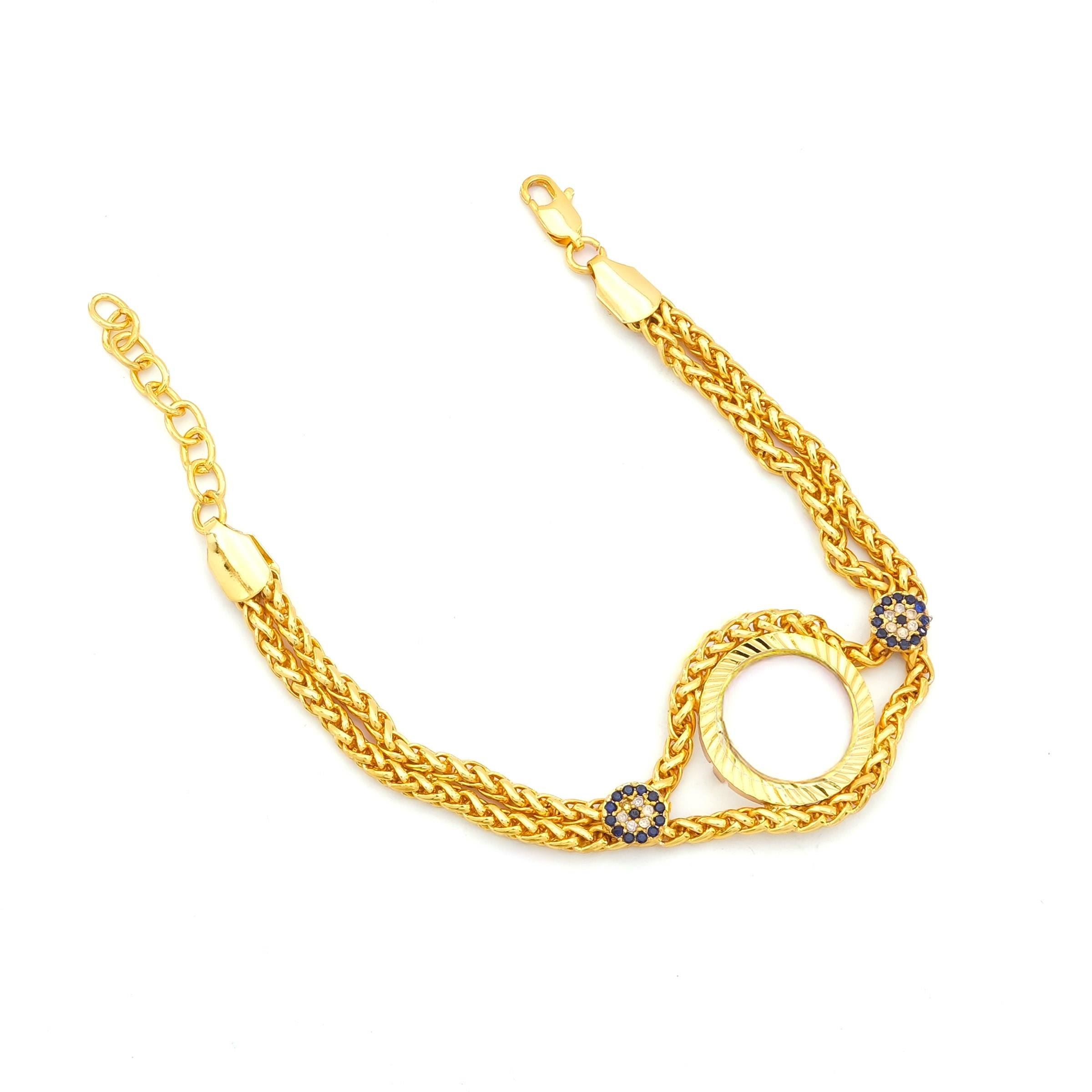 Altın Kaplama Nazar Boncuklu Çeyrek Çerçeve Bileklik BLK-1148