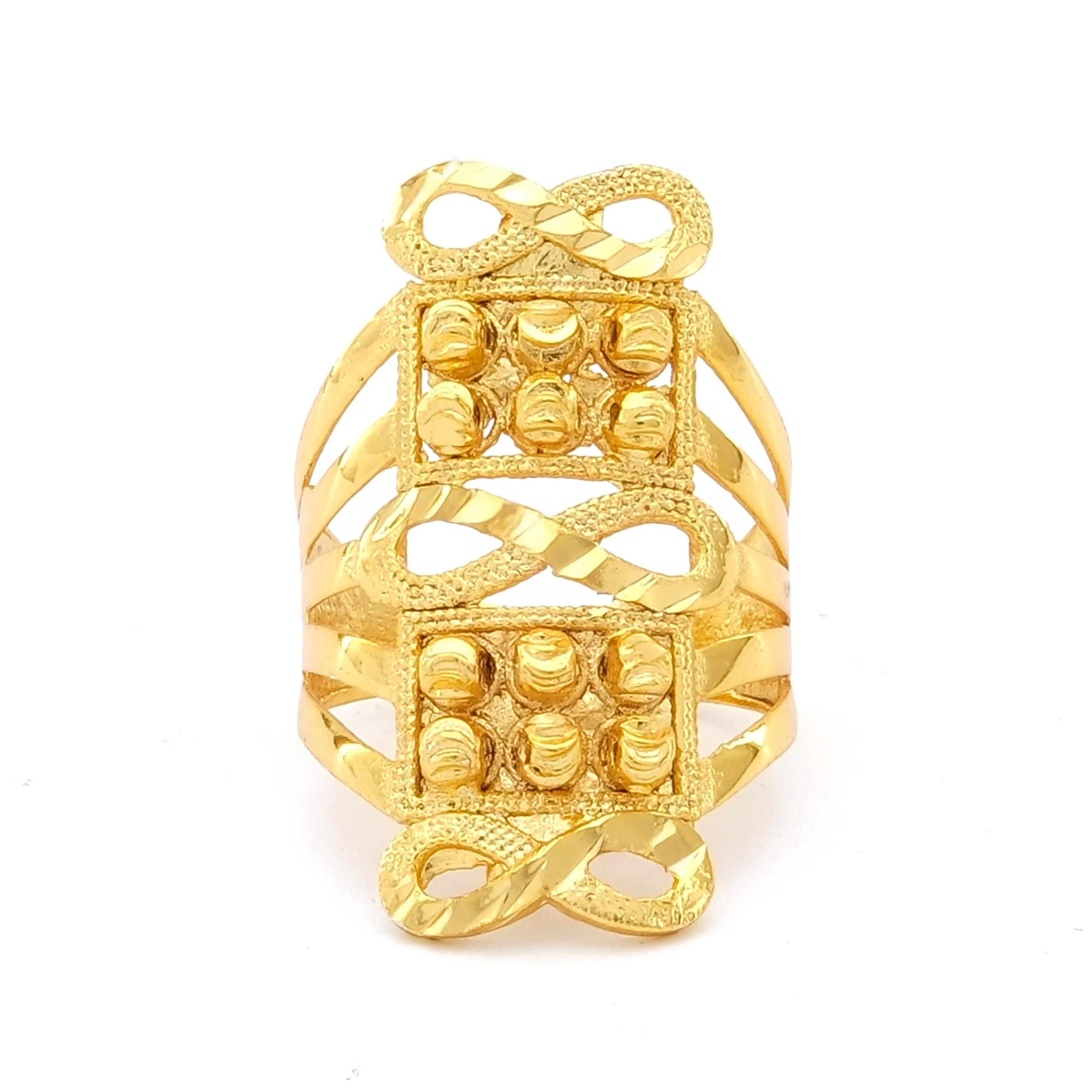 Renk: Parlak altın rengi, yüzüğün zarif detaylarını öne çıkarır