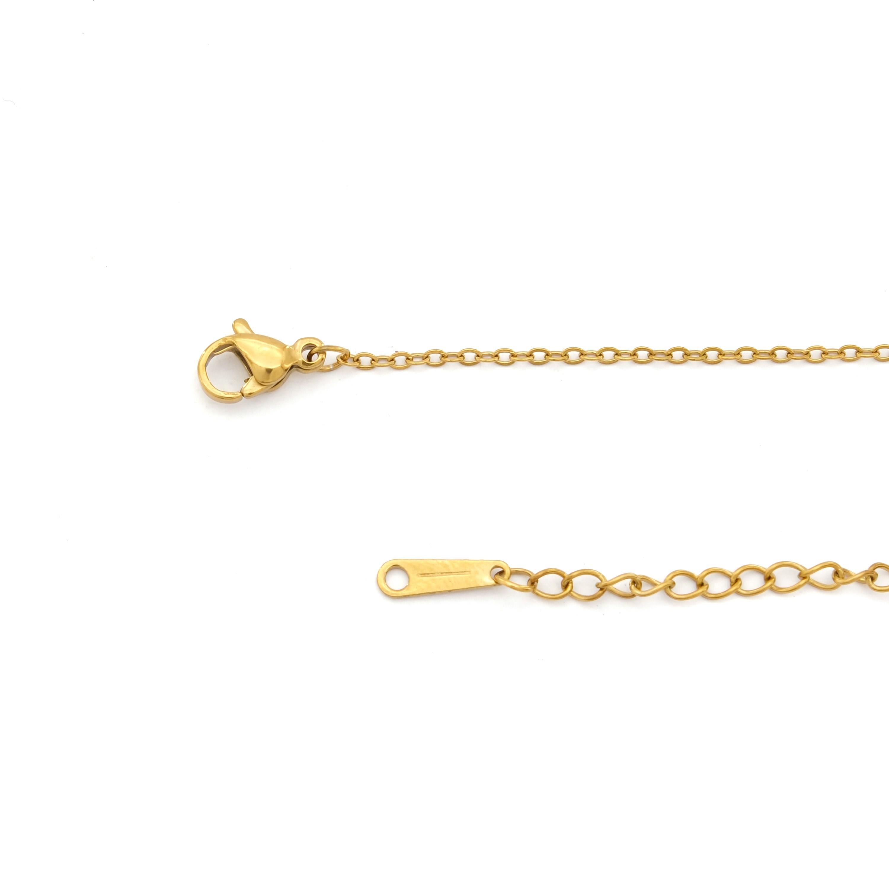 Altın kaplama kolye formundaki bu özel tasarım, paslanmaz çelik yapısı ve 22 ayar altın rengi kaplamasıyla uzun süre parlak görünümünü koruyarak boyun hattında zarif ve dikkat çekici bir stil sunar. Kararmaya karşı dayanıklı yapısı sayesinde günlük kullanımdan özel kombinlere kadar farklı stillerle kolayca uyum sağlar.