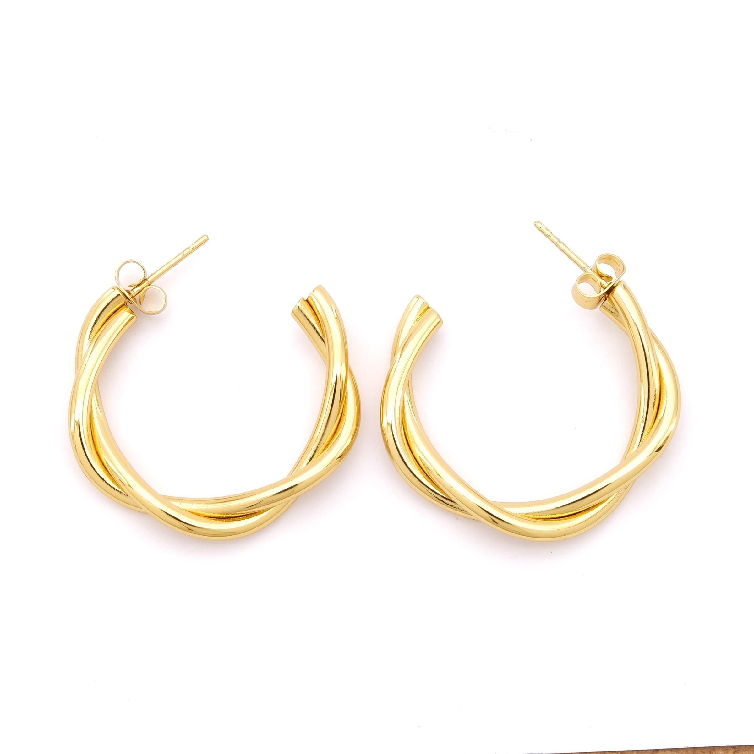 FerizZ kalitesiyle üretilen Çelik Küpe Altın Kaplama Kadın Burgu Halka Model UNK-799, kararma yapmaz ve uzun süre parlak kalır: