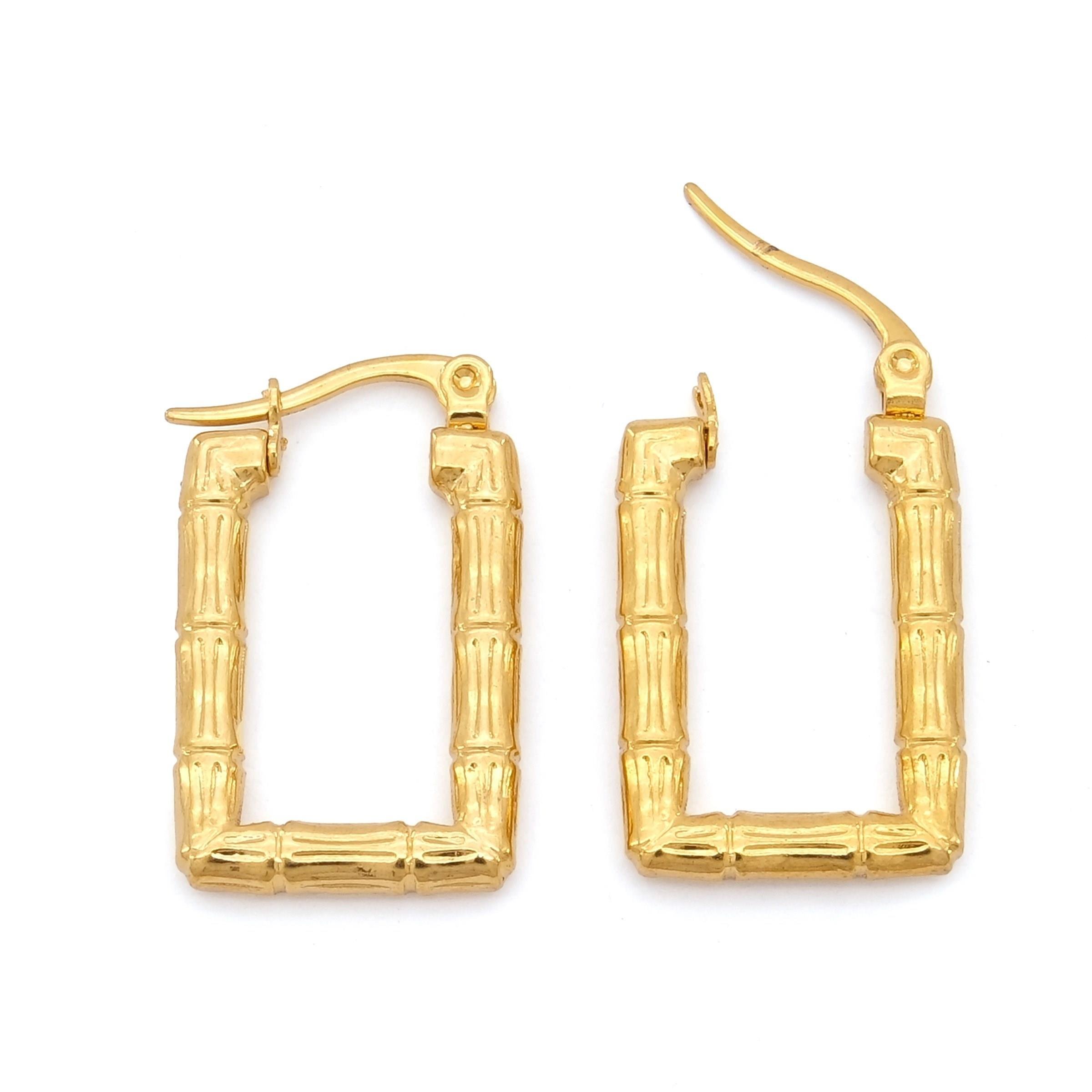 Çelik Küpe Altın Kaplama Kadın Dikdörtgen Model UNK-816, benzersiz dikdörtgen formuyla klasik halka küpelere modern bir alternatif sunar. Bu tasarım, farkını yansıtmak isteyen kadınlar için özel olarak üretilmiştir.