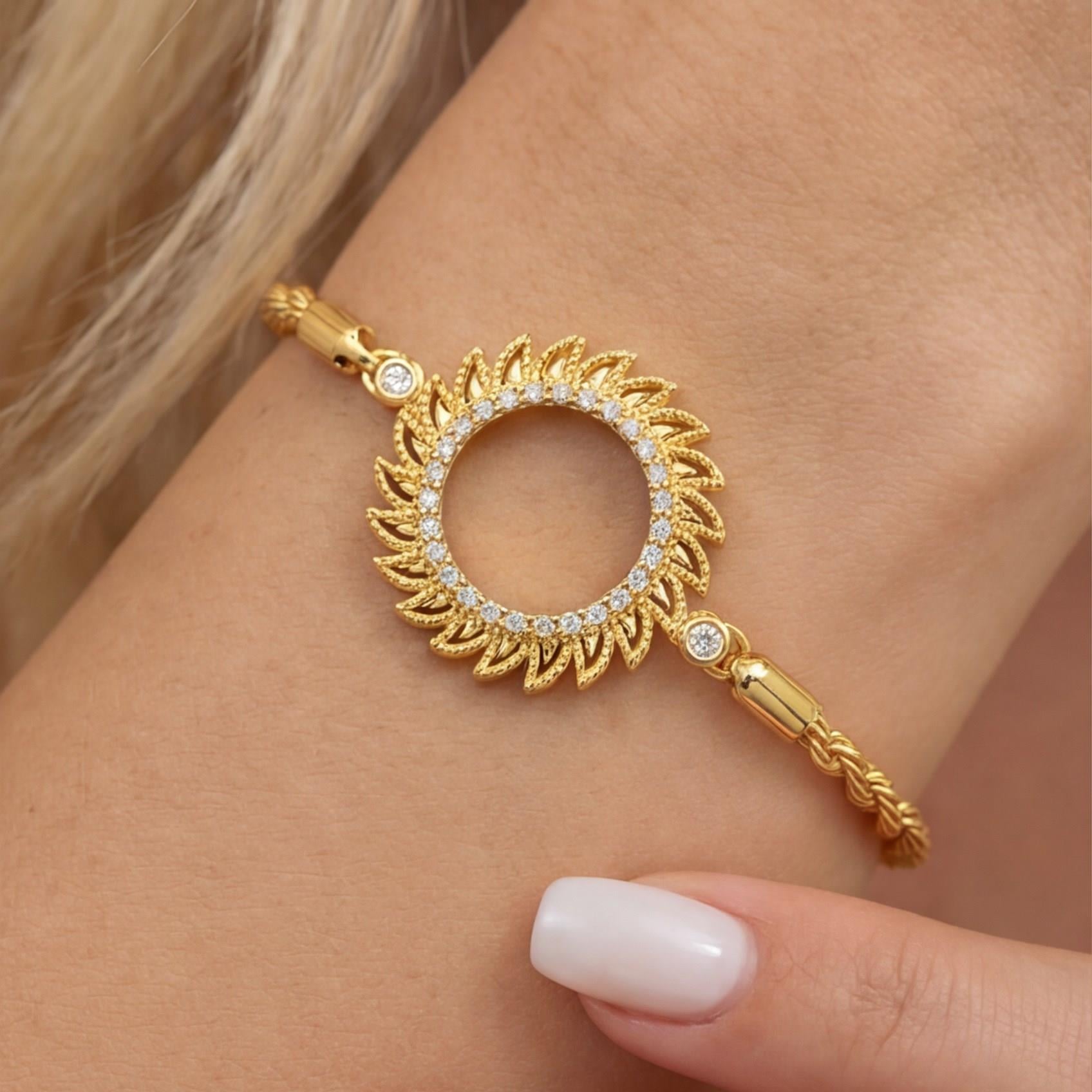 İmitasyon çeyrek çerçeve bileklik formundaki bu özel tasarım, 22 ayar altın kaplama rengiyle klasik çeyrek görünümünü modern bir bileklik formunda sunarak bilekte dikkat çekici ve şık bir duruş oluşturur. Çerçeveli detay yapısı sayesinde tek başına güçlü bir görünüm verirken günlük kombinlerden özel anlara kadar kolayca uyum sağlar.