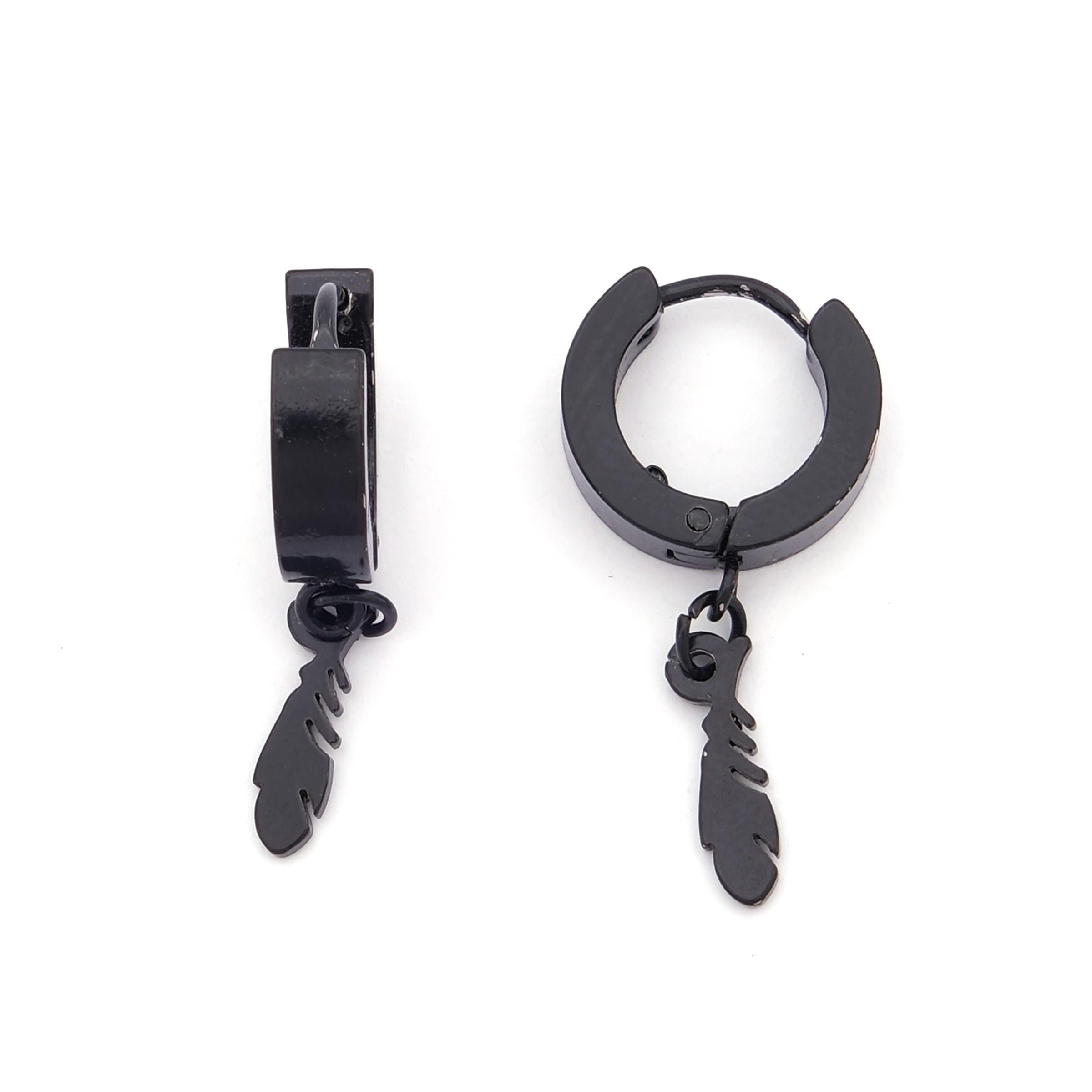 Çelik Sallantılı 316L Siyah Tüy Detaylı Halka Küpe UNK-706 (UNK-706)