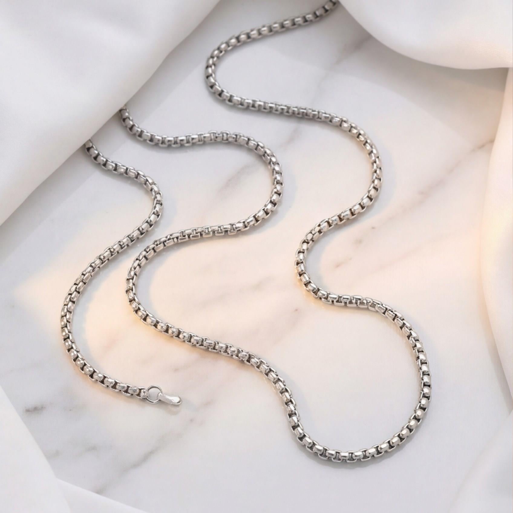 Çelik zincir kolye formundaki bu özel tasarım, pürüzsüz metal yapısıyla parlak görünümünü uzun süre koruyarak güçlü ve modern bir stil sunar.