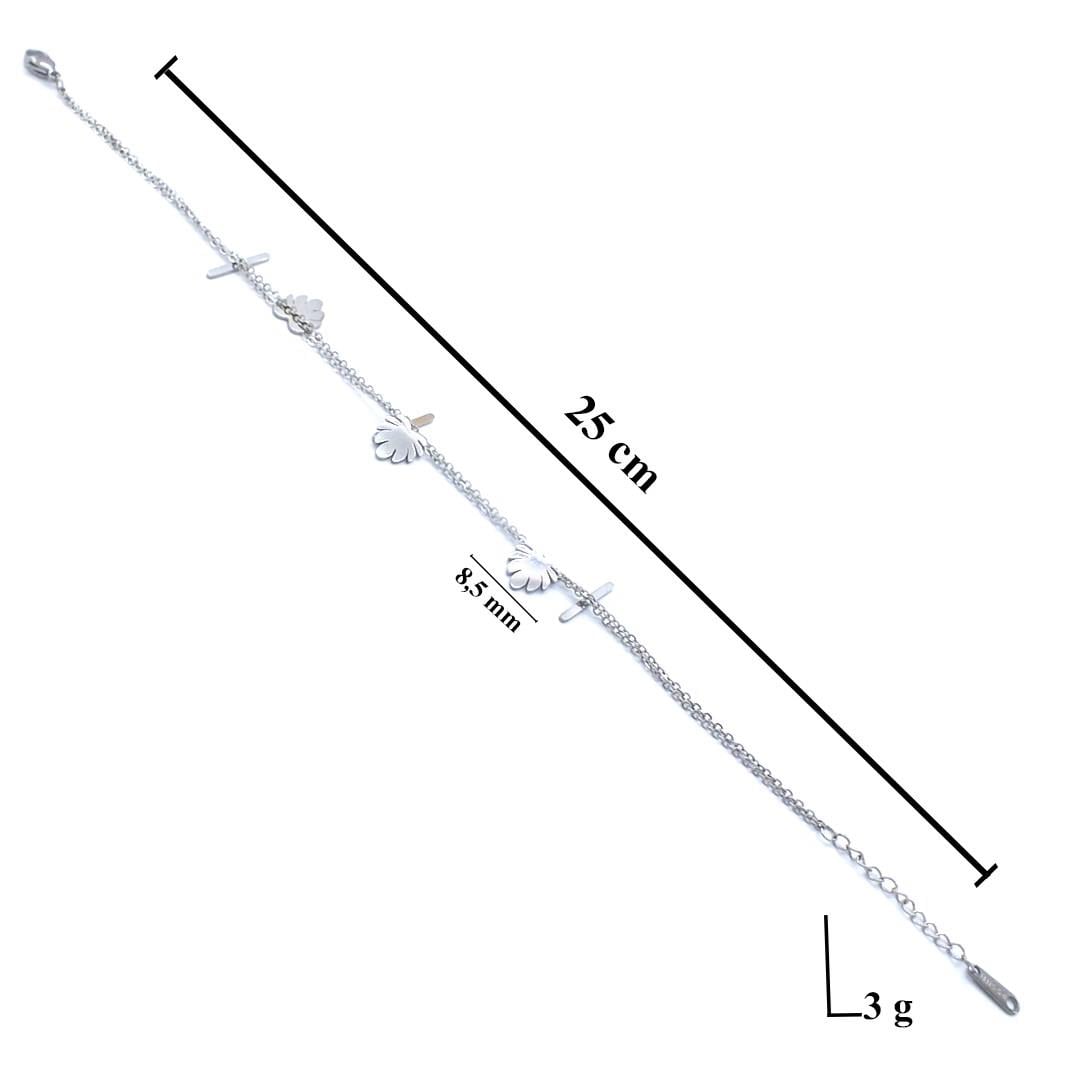 Çelik halhal formundaki bu özel tasarım, metal parlaklığıyla ayak bileğinde şık ve dikkat çekici bir görünüm sunar.