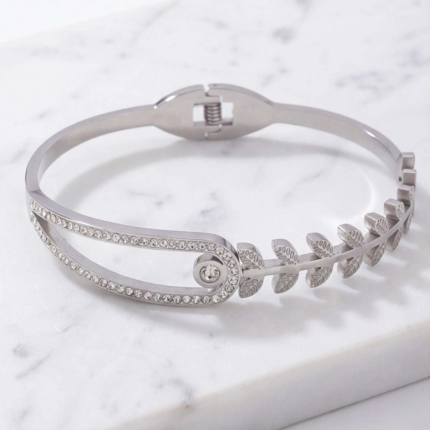 Çelik bileklik formundaki bu özel tasarım, sağlam yapısıyla metal parlaklığını uzun süre koruyarak bilekte modern bir duruş sunar.