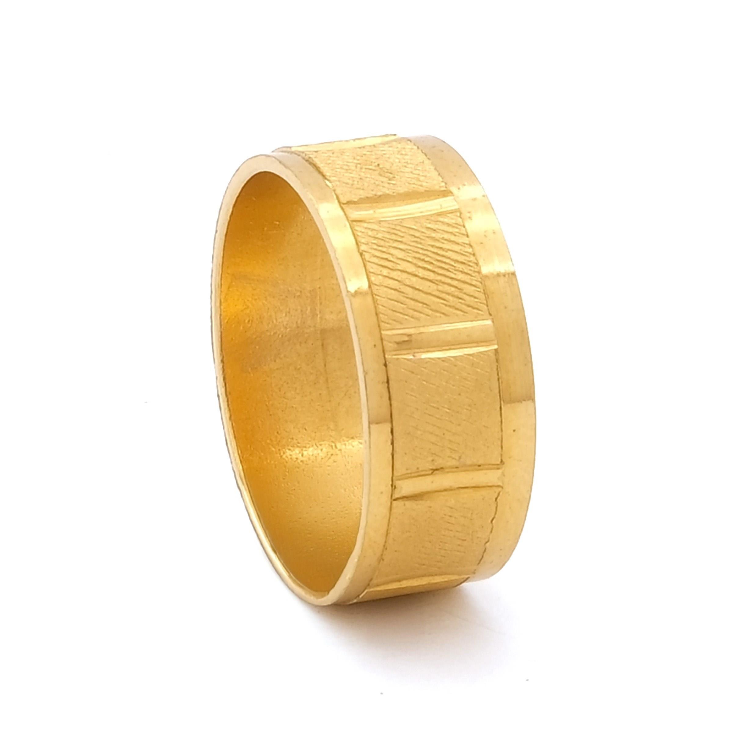 Renk: Parlak altın rengi, yüzüğün zarif ve minimalist detaylarını öne çıkarır
