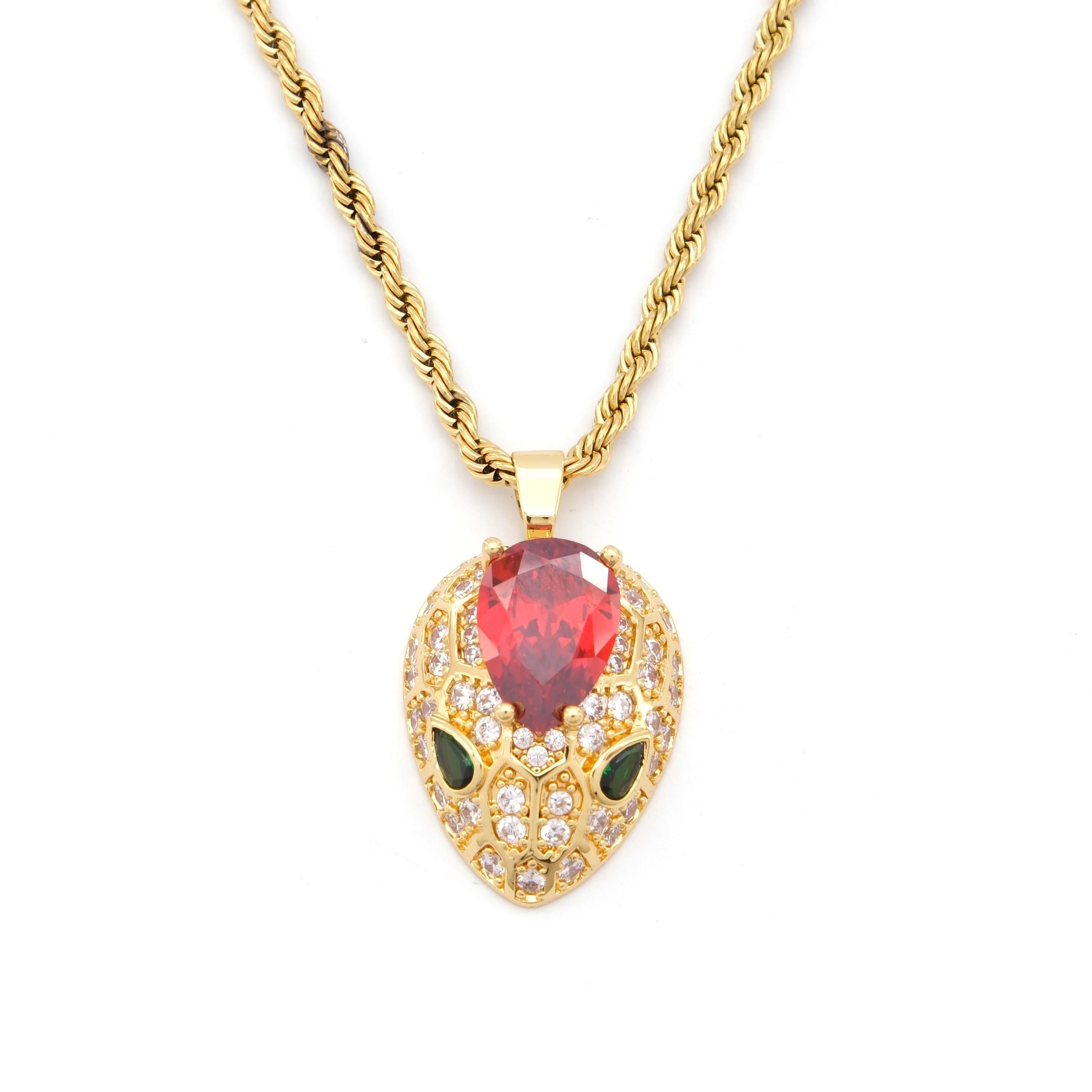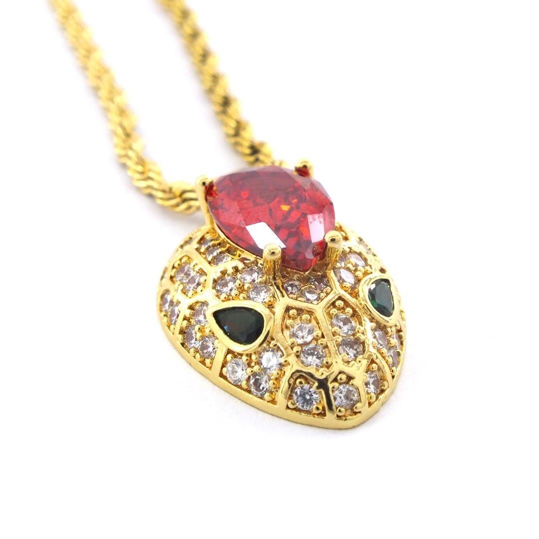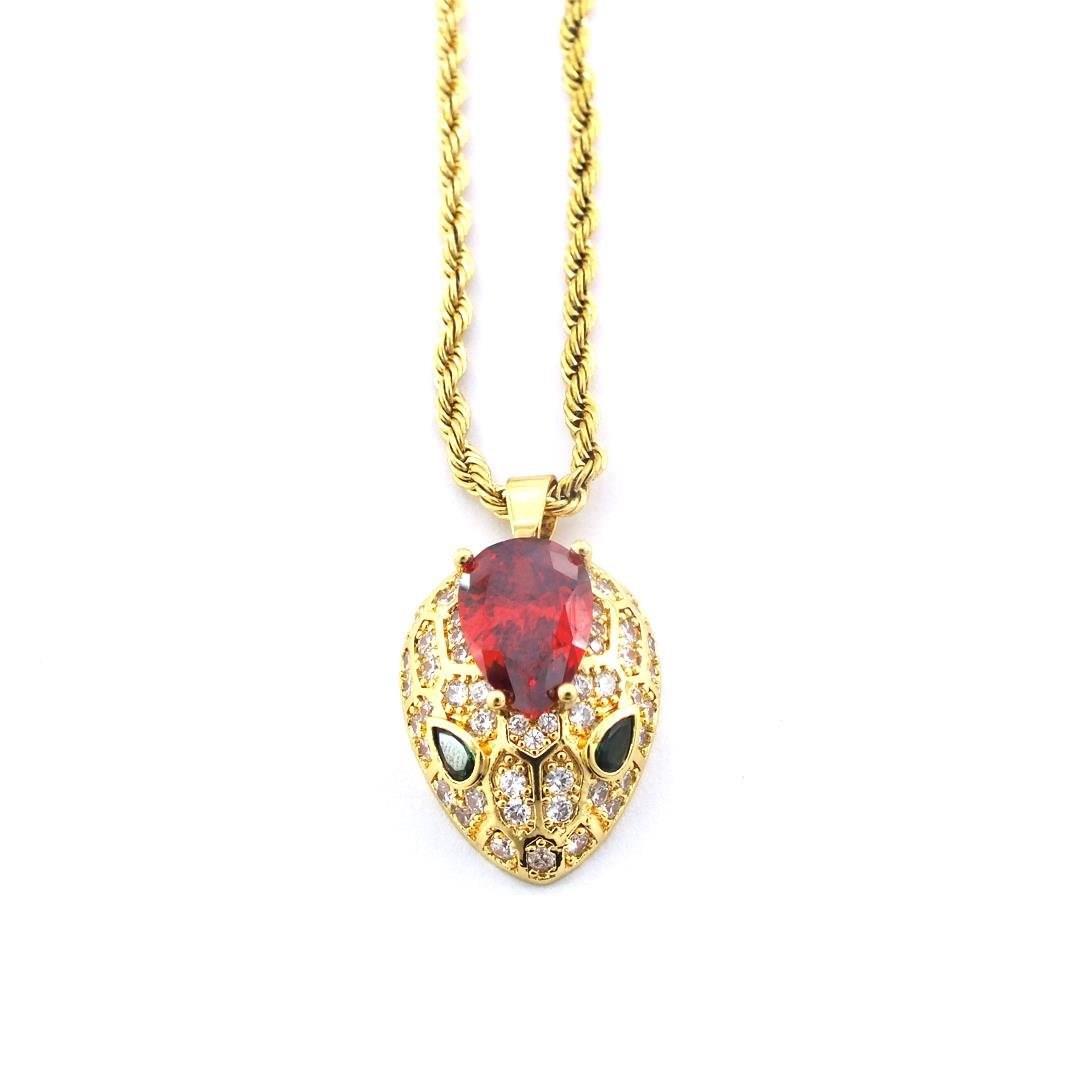 Çelik Kolye - Yılan Kolye Altın Kaplama - Kırmızı Taşlı Kolye KLY-603 (KLY-603)