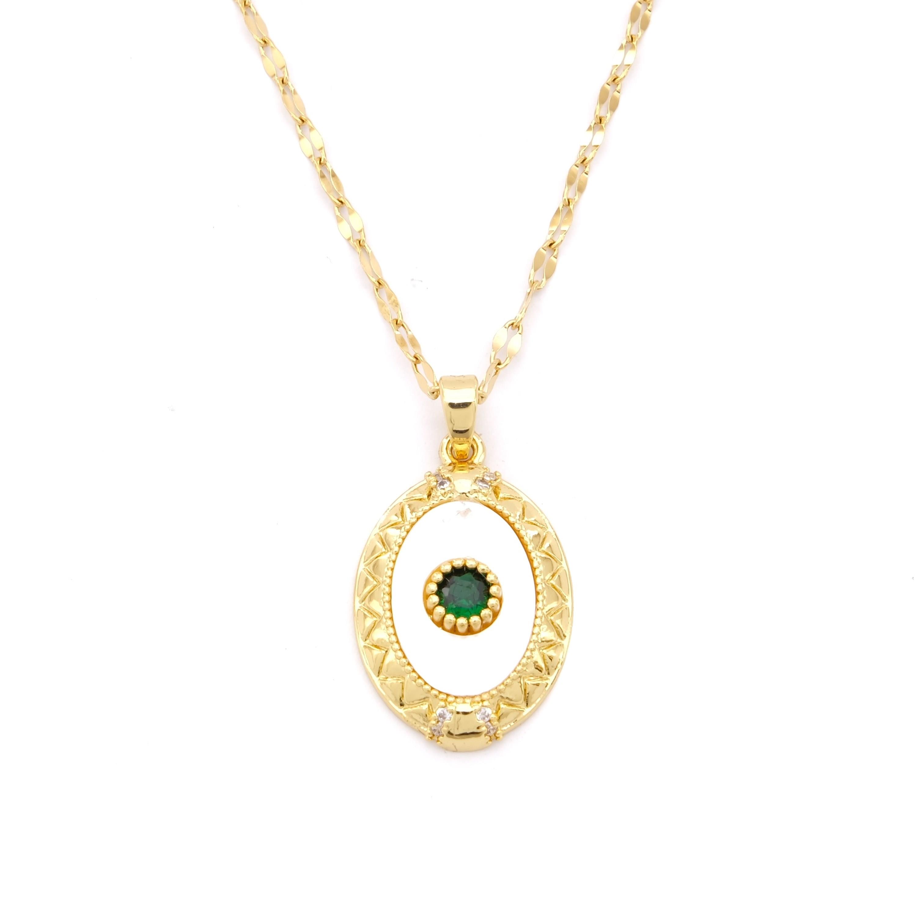 Çelik Kolye - Göz Kolye Yeşil Taşlı Altın Kaplama KLY-612 (KLY-612)