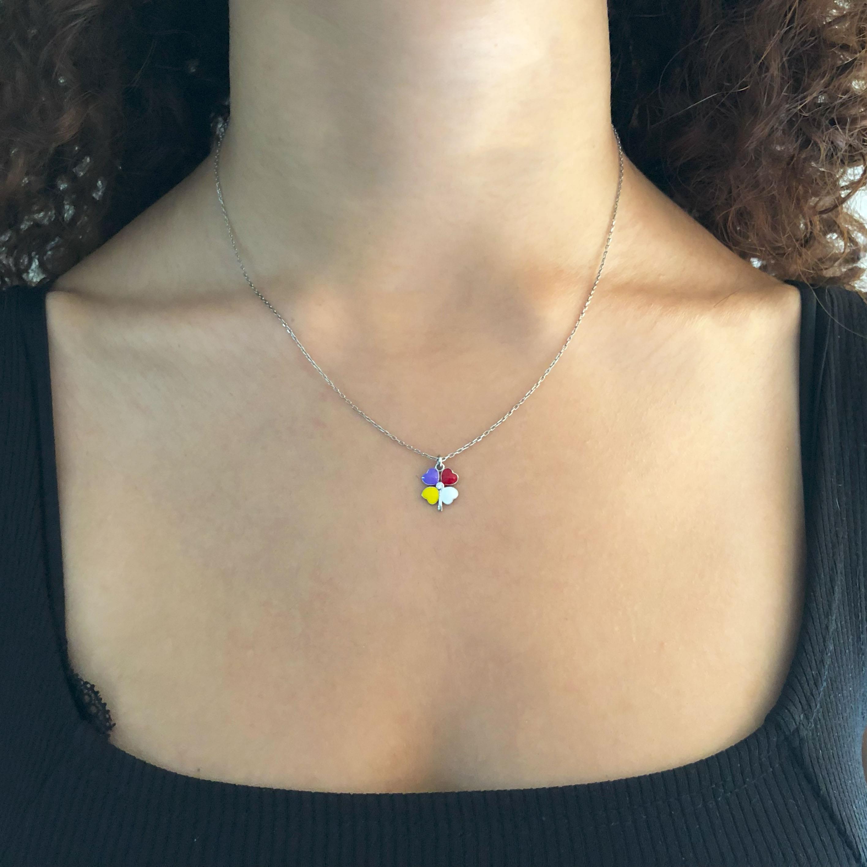 Renkli 4 Yapraklı Yonca Model Gümüş Kolye GK-258 (GK-258)